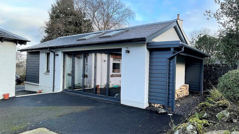 Our client decided to replace their old garage, which was taking up garden space, with a custom building tailored to their business needs. In today's work-from-home environment, creating a dedicated workspace free from distractions can significantly impact one's productivity and success. For this client, it was essential to have a space where she could coach clients, even in inclement weather, without compromising on brightness and ambiance.